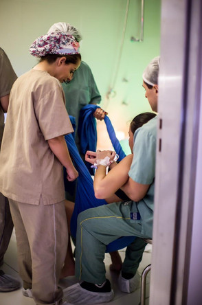 A Julia secou meu cabelo (por causa do bisturi elétrico). A Cacau levava música, velas e outras coisas para o centro cirúrgico.